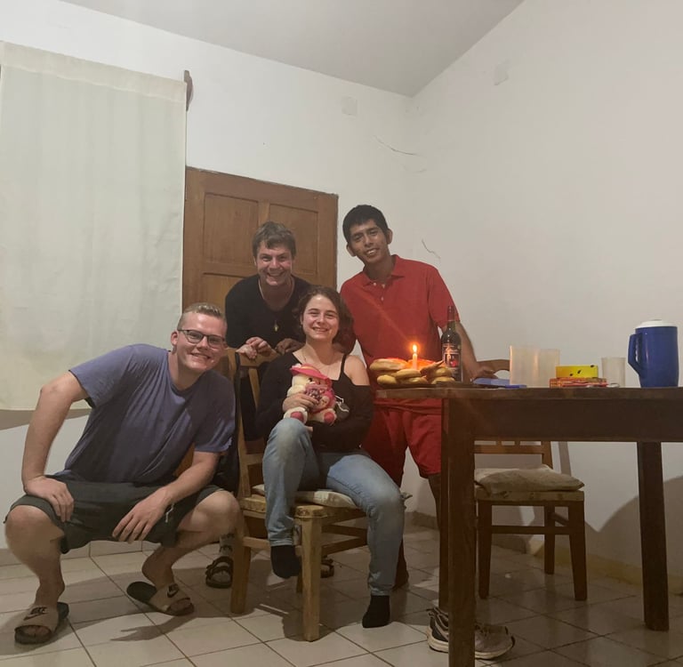 Hier ist jeder Tag anders und oft gibt es spontane Dinge, die anders sind als geplant. Aber der grobe Tagesablauf, der immer ähnlich ist, sieht so aus: Montag bis Freitag haben die Kids Schule. Sie stehen um 5:30 Uhr auf und müssen als erstes einige Arbeiten erledigen. Im Internat ist viel zu tun und bis auf einige Ausnahmen, z.B. Stromleitungen, machen die Kids alles selbst. Da auch Gemüse im Garten angepflanzt wird, ist viel zu tun. Ich gehe meistens Richtung 6:30/7 Uhr zur Parroquia und gieße dort die Pflanzen. Um 9 Uhr beginnen dann wir Freiwilligen zusammen mit den Betreuerinnen zu kochen, damit es dann, wenn die Kids aus der Schule kommen, um 12:30 Uhr Mittagessen gibt. Nachmittags haben die Kids meistens auch Unterricht, wodurch wir Freiwilligen diesen Zeitraum sehr frei gestalten können. Mal ruhen wir uns aus, mal backen wir etwas, oder wir bereiten Präsentationen vor, um den Kids z.B. etwas über unsere Herkunftsländer zu erzählen. Abends helfen wir dann bei den Hausaufgaben. Meistens bis 22 Uhr. Samstags sind oft viele Treffen in der Pfarrei. Jeden Samstag gibt es einen Jugendtreff, der von einem der älteren Jungs aus dem Internat geleitet wird. Dort können wir uns aktiv in die Gestaltung einbringen. Einmal im Monat gibt es auch ein Treffen der älteren Mitglieder der Gemeinde. Es wird etwas gebastelt, Bingo gespielt und etwas gegessen. Es macht immer sehr Spaß, Zeit mit den Älteren Menschen zu verbringen, weil sie für unsere Arbeit sehr viel Wertschätzung zeigen. Sonntags geht es morgens in die Kirche. Den Rest des Tages haben die Jungs frei. Abends schauen wir meistens gemeinsam einen Film. Wie bereits erwähnt, ist ein großer Teil des Alltags sehr spontan. Uhrzeiten ändern sich nach vorne oder nach hinten. Ausflüge, z.B. zur Estancia ergeben sich kurzfristig, und das sind nur einige Beispiele. Das ist für mich noch gewöhnungsbedürftig. Auch ist es gewöhnungsbedürftig, im Projekt zu leben. Gerade am Anfang war es schwierig, weil man keinen richtigen Rückzugsort außer das überhitzte Zimmer hat. Inzwischen komme ich damit aber gut klar. Natürlich nervt es manchmal, dass man, sobald man das Zimmer verlässt beobachtet wird. Gerade Kids in diesem Alter sind natürlich neugierig. Trotzdem merke ich, dass es mir gut tut, ständig unter Leuten zu sein, auch wenn es manchmal sehr anstrengend ist. Manchmal brauche ich Tage, an denen ich mich einfach nur zurückziehe, aber auch das ist denke ich total normal.