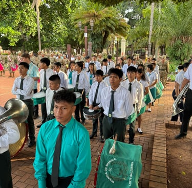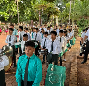 Die Schule hat auch ein eigenes Kleines Orchester. Hier darf ich jetzt ein bisschen mithelfen, das Orchester zu leiten. Vor einem Umzug in der Stadt habe ich zum Beispiel mit den Jugendlichen eine Marschprobe gemacht. Hier konnte ich gut einige Übungen anwenden, die ich vorher schon in der Musikkapelle in Deutschland gelernt habe.